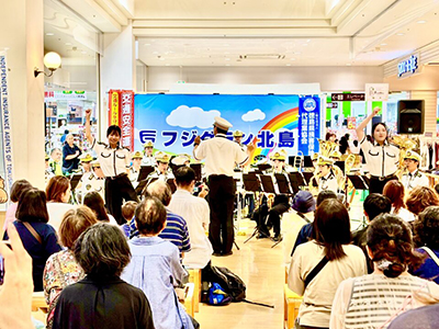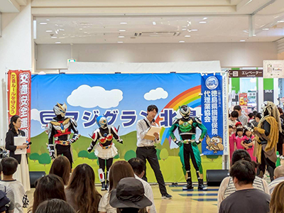 徳島県警音楽隊様の演奏のほか、鴨島ミライ防災ラボ様の防災クイズ、子どもたちに人気の渦戦士エディのヒーローショー、ダンススタジオCHANCE様のダンスパフォーマンスが行われ、大いに盛り上がりました。