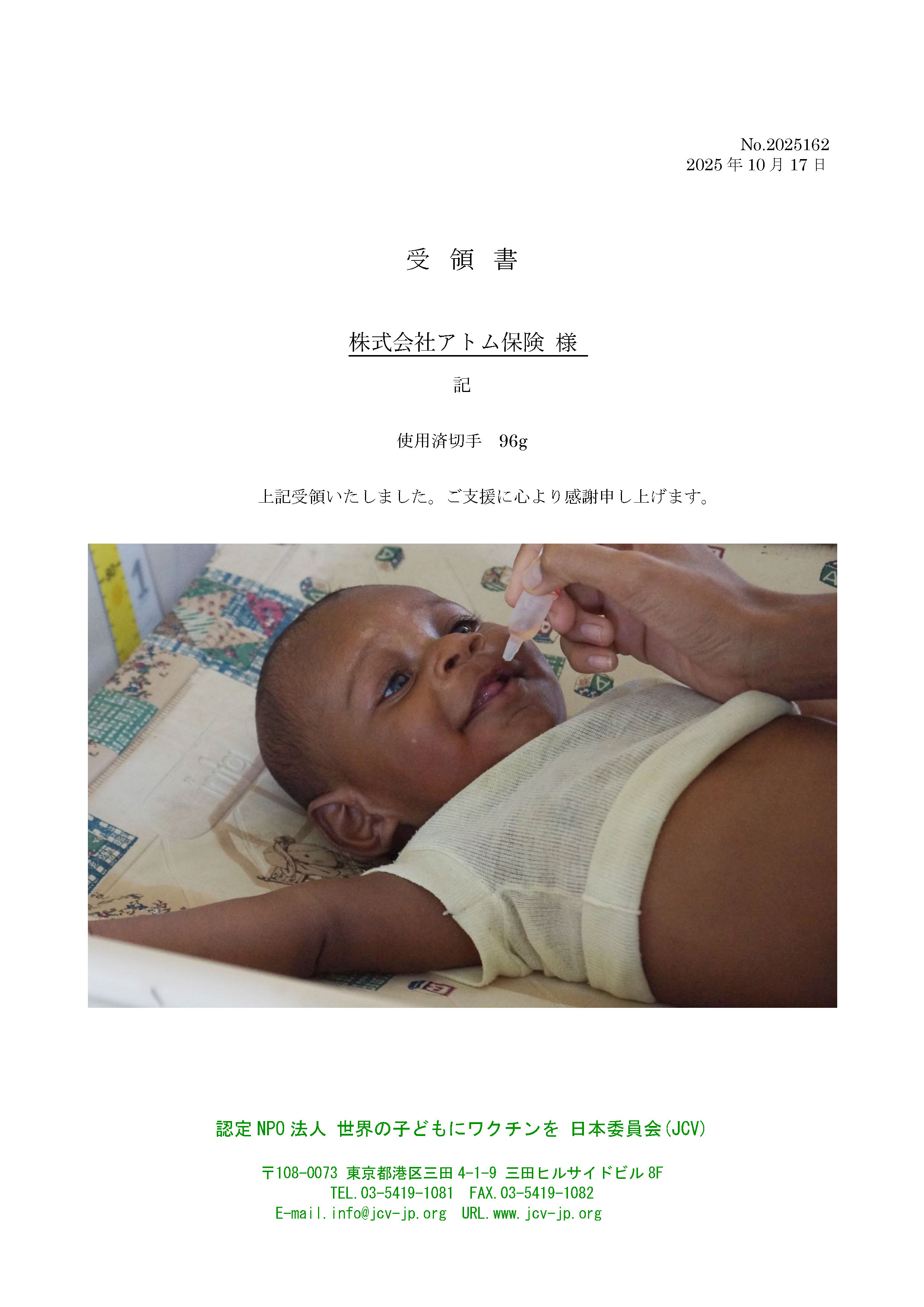 当社では、社会貢献活動の一環として、使用済み切手を「世界の子どもにワクチンを 日本委員会」へお送りいたしました。